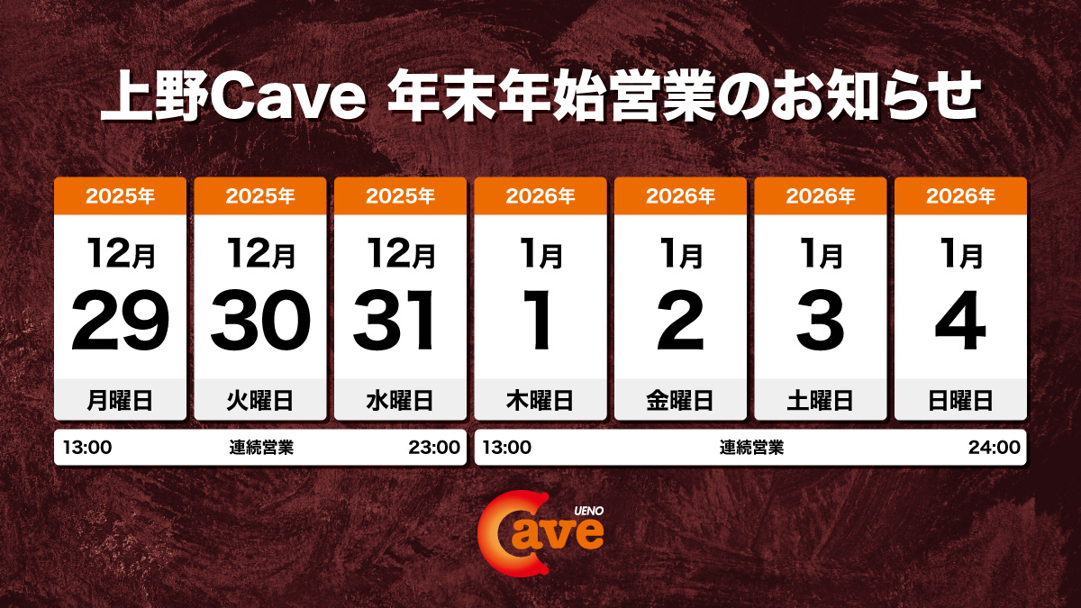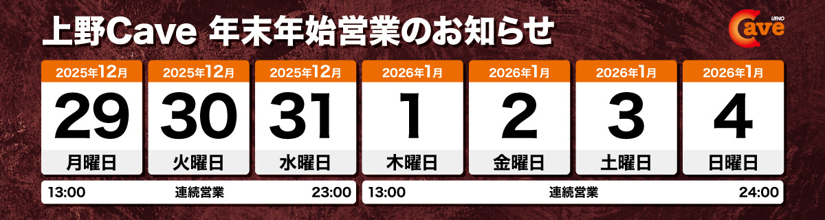 年末年初营业时间通知出版日期 - 2025.12.12 感谢您一直以来的惠顾。我们将以「年末年初特别连续营业」为主题,进行不间断营业。营业时间请参阅通知图片。年末年初也请在我们店里尽情享受。